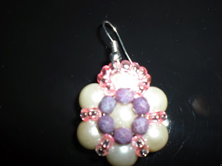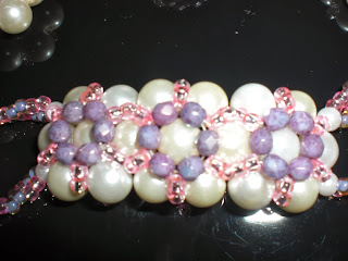 Un set elegant, format din inel, cercei si bratara, lucrat din perle de sticla, cristale de Bohemia si margele toho.